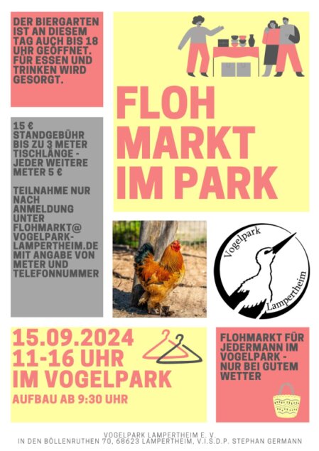 Die ehrenamtlichen Helfer des Vogelparks versorgen euch an dem Tag mit Kaffee, Kuchen, Kaltgetränken und leckeren Flammkuchen. Der Biergarten ist von 13 bis 18 Uhr geöffnet.