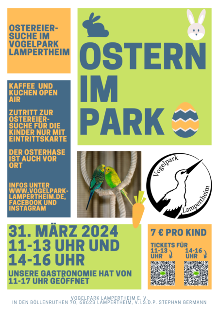 Die Crew des Vogelpark Lampertheim lädt zur großen Ostereiersuche auf dem Vereinsgelände ein.